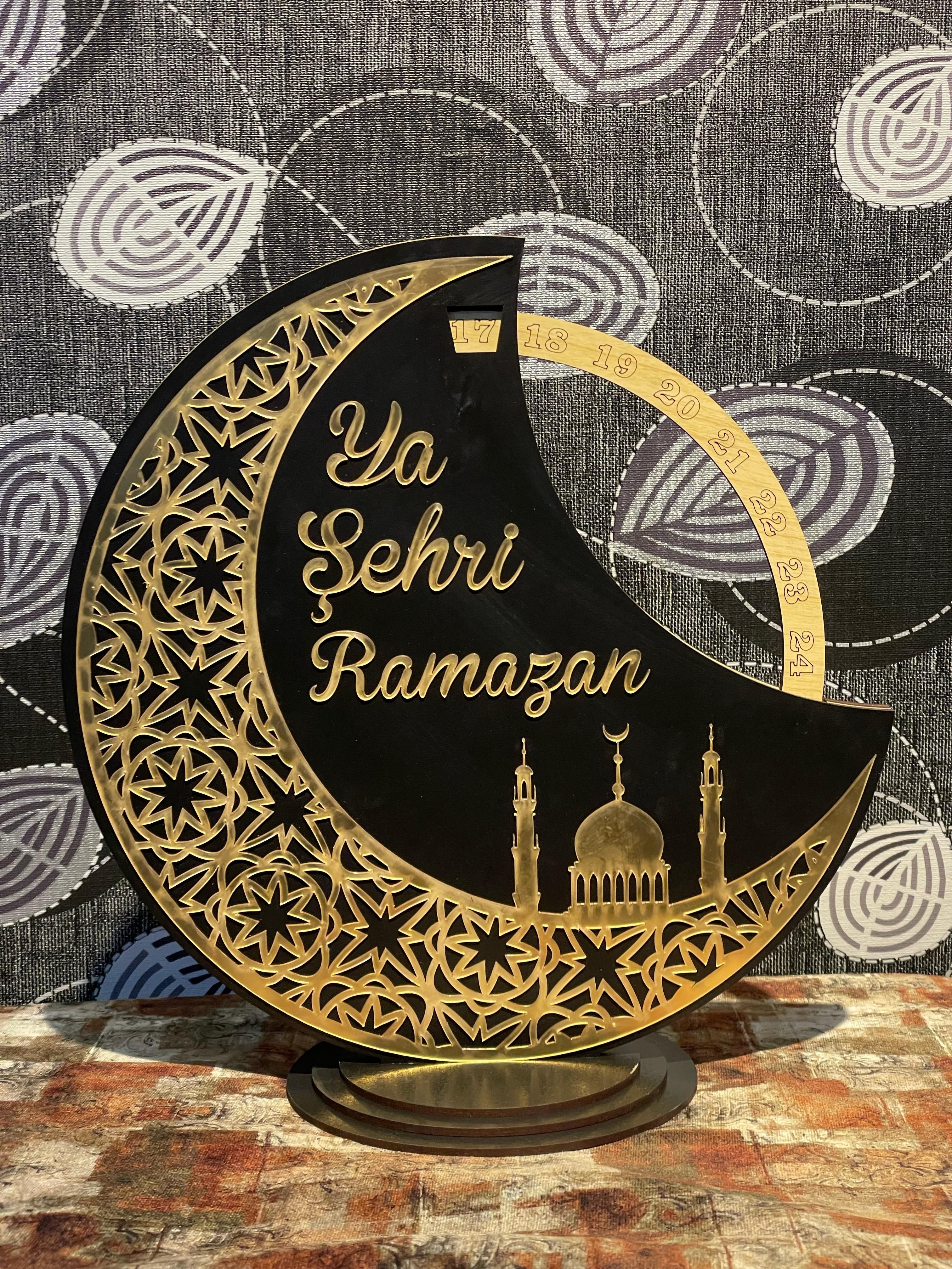 Ramazan ayının manevi atmosferini evinizde hissettirecek özel tasarımlı bir ürün! Şık ve zarif bir görünüme sahip olan bu dekoratif takvim, MDF ve pleksi malzemeler kullanılarak özenle üretilmiştir.